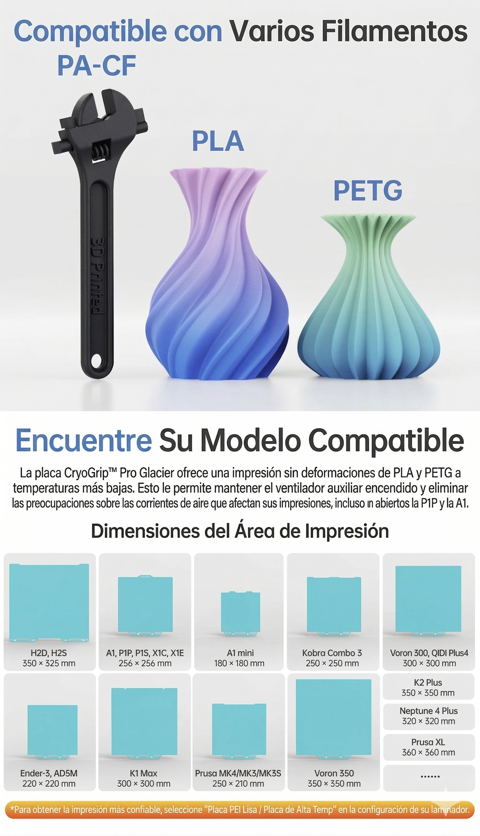 Cama Cryogrip Pro BambuLab A1/P1/X1/P2 257 mm